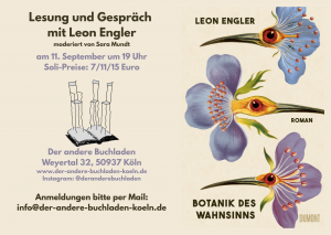 Lesung & Gespräch mit Leon Engler über „Botanik des Wahnsinns“