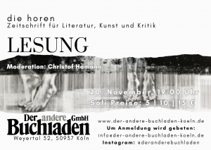 INFO: Wir bitten um eine etwaige vorherige Anmeldung unter info@der-andere-buchladen-koeln.de