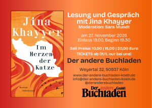 Lesung – Jina Khayyer „Im Herzen der Katze“ – Moderation Sara Mundt
