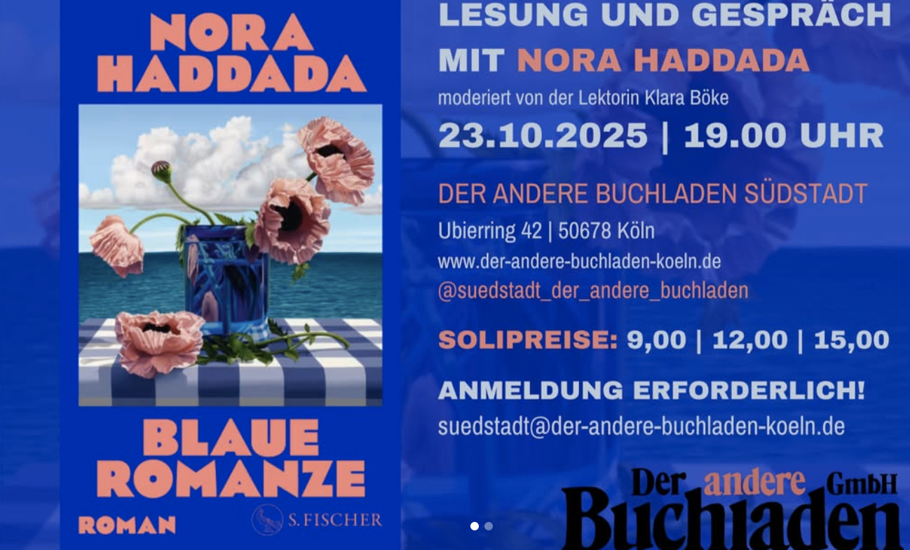 INFO: Wir bitten um eine vorherige Anmeldung per Mail: suedstadt@der-andere-buchladen-koeln.de